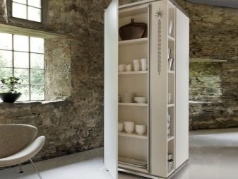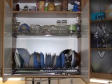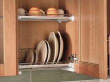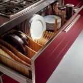 Sebbene sia più semplice e veloce posizionare tutte le stoviglie disponibili sugli scaffali, la presenza di un gran numero di moderni sistemi di archiviazione consente di risolvere il compito in modo più efficace ed estetico. Tuttavia, è consuetudine tenere i piatti sugli scaffali, ma invece dei soliti, ha senso acquistare quelli speciali che consentono di posizionare gli oggetti "sul bordo".
