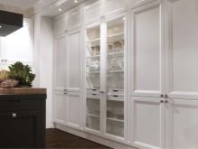 Vale la pena ricordare che a volte nelle grandi cucine c'è anche un armadio a muro per lavare i piatti. Di regola, occupa una nicchia o una parete esistente ed è una struttura simile al guardaroba comune.