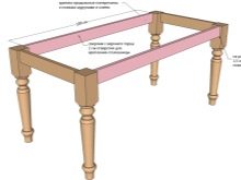 Ricorda che la traversa inferiore è invariabilmente doppia rispetto a quella superiore. La sua configurazione è diversa. Fondamentalmente, le gambe sono posizionate dal bordo della superficie del tavolo ad una distanza di 15-20 centimetri.