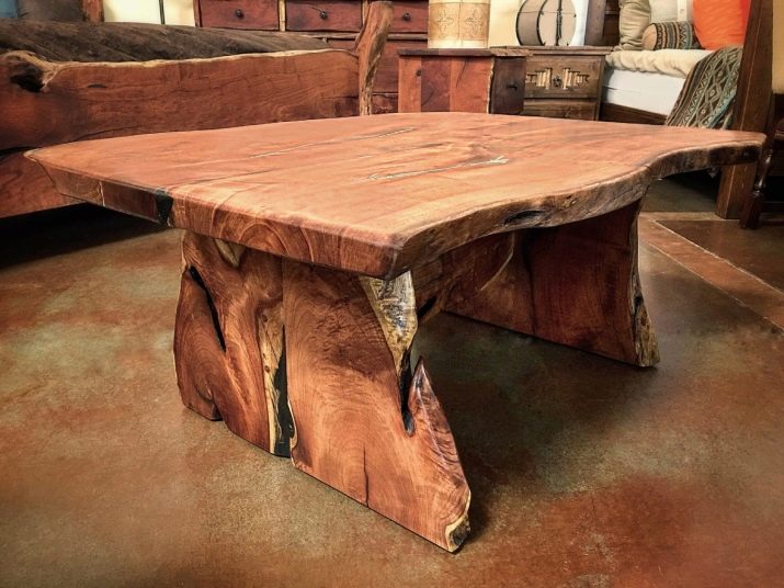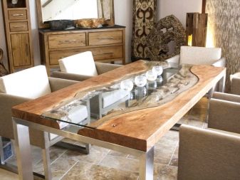 - Tavolo in lastre di legno. Così precedentemente chiamato lastre di roccia esclusivamente monolitiche. Oggi questo termine viene applicato ai tagli trasversali e longitudinali di un massiccio massiccio. Ogni fetta ha uno schema e una forma speciali. Da esso crea tavoli, tavoli da pranzo, bar, tavolini da caffè. Si combina con successo con il vetro.