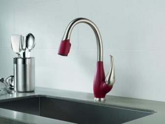 Anche il rivestimento smaltato della gru sembra molto attraente. Sembra che il prodotto sia realizzato in ceramica. In questa variante, puoi scegliere il colore giusto per integrare l'immagine complessiva della cucina.