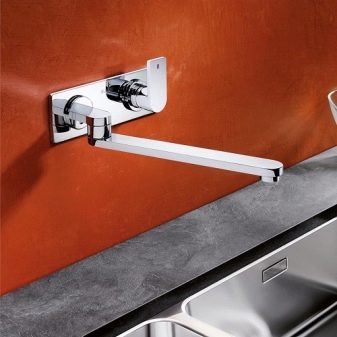 Esiste un'opzione di progettazione per il montaggio a filo. Qui, l'intera unità è montata su una parete, solo il beccuccio e il regolatore rimangono accessibili. Ma non tutti i rubinetti a parete sono così difficili da installare. In ogni caso, dovrai nascondere i tubi dell'acqua e fissare il dispositivo nel muro vicino al lavandino.