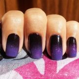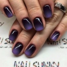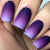 Il nero e il viola sono anche combinati nelle tecniche di "manicure lunare", sfregamento, craquelure, "occhio di gatto". Il velo nero sembra piuttosto elegante su uno sfondo viola, e l'astrazione geometrica in velluto sul rivestimento viola è sorprendente. Il colore di "melanzane" è scelto da personalità non standard. Attira l'attenzione con una sola tonalità. E se usi il nero per dargli raffinatezza, allora la manicure si trasforma in arte.