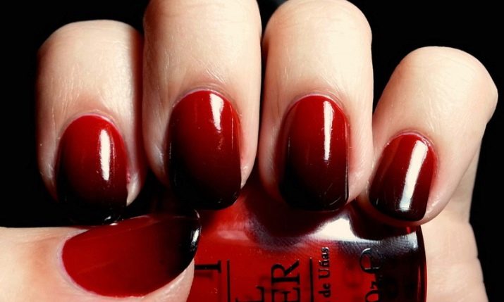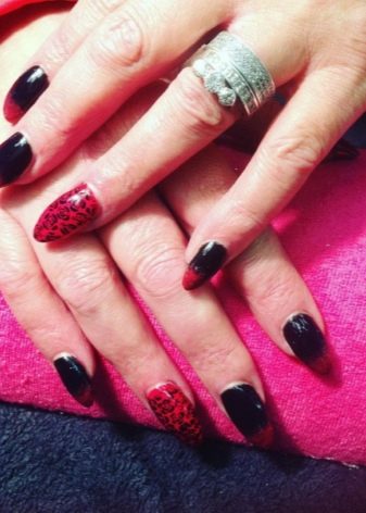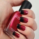 Colorazione originale in piselli. Inoltre, la dimensione dei piselli può variare, scorrendo da grandi a piccoli. La "scacchiera", così come il famoso "velo", sono popolari. La manicure nera e rossa sembra elegante e luminosa sulle mani. Le transizioni originali nella tecnica delle ombre attireranno sicuramente l'attenzione degli altri. La base nera si combina non solo con un profondo color scarlatto o elegante color bordeaux, ma anche con corallo, lampone, rubino, fucsia e una tonalità di mogano.