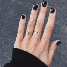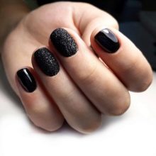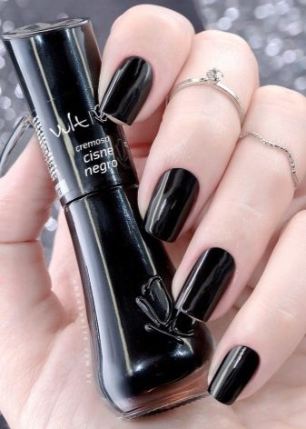 Una tendenza popolare negli ultimi anni è la manicure nera. I tempi in cui era considerato volgare e indossati solo da rappresentanti di piccole sottoculture, goti e altre cupe personalità, sono passati da tempo. Oggi, il nero è elencato come colore di base, che può essere facilmente combinato con altre tonalità di manicure, trucco e abbigliamento.