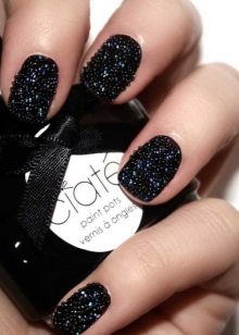 - Sand. Per creare un effetto vellutato, gli stilisti usano una polvere speciale che viene applicata sulla vernice. Si scopre una manicure assolutamente unica, che purtroppo è molto lunatica. Qualsiasi polvere, sporco, acqua o altri ambienti aggressivi possono rovinarlo.