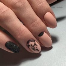 La popolare manicure opaca di recente ha un aspetto migliore sulle unghie allungate, quindi le unghie rotonde corte non sono la scelta migliore per un tale rivestimento. Ma la lucentezza sembra ottima con qualsiasi lunghezza e forma. La combinazione di queste due trame aggiungerà originalità e raffinatezza al design rotondo.