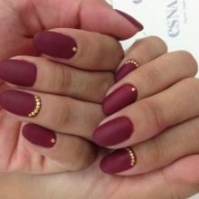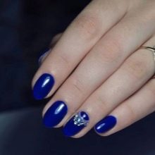 I fan delle tonalità più profonde e più luminose dovrebbero dare un'occhiata più da vicino ai colori saturi alla moda della stagione. Blu scuro, smeraldo, marsala sono molto espressivi, conferiscono all'ensemble uno status. Una combinazione di un rivestimento opaco monocolore e lucido in queste tonalità sembra molto insolita. Una piccola enfasi su una o due dita è sufficiente per rendere la manicure davvero chic. Può essere strass, design floreale o decorazioni brillanti.