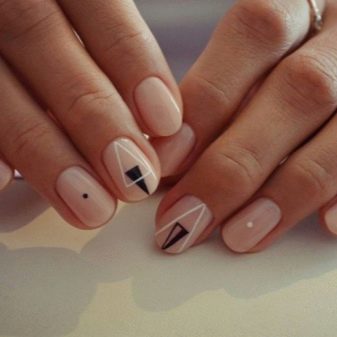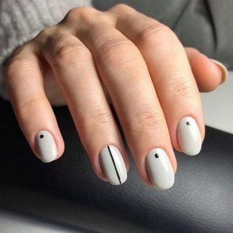 Questo è un vero successo della stagione in corso: carne, beige, trasparente sono eccellenti per coprire le unghie arrotondate. Disegni minimalisti nei colori bianco, nero e grigio creeranno un'impressione unica e aristocratica. Inoltre, questi colori sono semplicemente insostituibili quando si crea una giacca francese, dal design lunare.