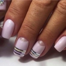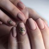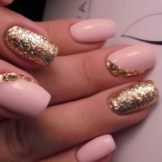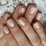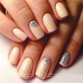 Per i proprietari di unghie corte, si consiglia di scegliere vernici color pastello o rivestimenti lucidi delicati, quasi trasparenti. In questo disegno, puoi aggiungere un po 'di oro e piccoli strass (decorare il foro o lasciarli attraversare l'intero chiodo ad angolo). Quando scegli una tonalità di vernice, fidati del tuo intuito. Il modo in cui le persone vedono la tua manicure non è la cosa principale, è importante che ti piaccia il design da solo, poiché le tue mani sono sempre nel nostro campo visivo. Quando si sceglie un colore di rivestimento, è meglio scegliere tonalità naturali.