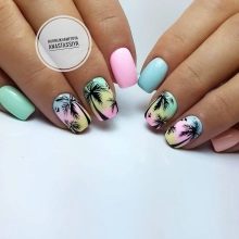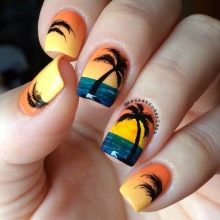 Quando si sceglie un rivestimento per unghie, è necessario tenere presente che sarà costantemente influenzato dai raggi UV, dall'acqua (incluso il mare) e da altri fattori ambientali avversi. Pertanto, è meglio scegliere vernici persistenti: gommalacca o smalto gel. Nella nuova stagione, le unghie di media e corta lunghezza sono alla moda. Le unghie lunghe non sono più rilevanti.