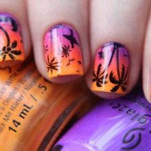 Una manicure con palme e tramonto è il miglior partner per le vacanze estive. Puoi decorare tutte le unghie con i palmi delle mani o concentrarti su uno, ad esempio, anonimo. Una manicure opaca semplice senza strass e scintillii è ancora popolare, così come una tecnica ombre con l'aggiunta di motivi geometrici che si adattano a qualsiasi look estivo. Gli elementi geometrici possono avere dimensioni e forme diverse. Le forme appariranno particolarmente belle su una sfumatura di due colori.