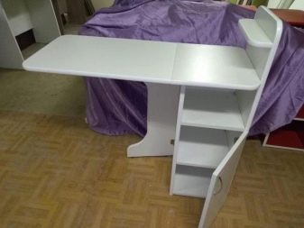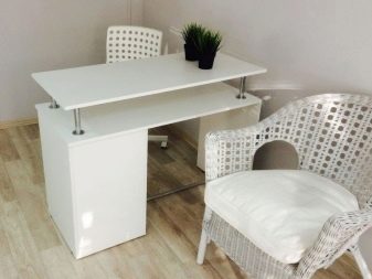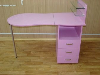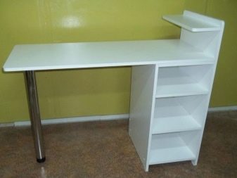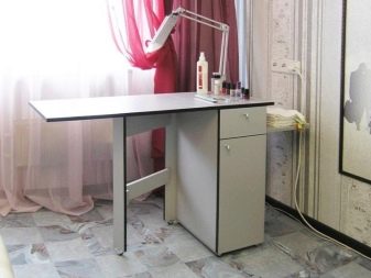Per uso domestico, puoi scegliere l'opzione economica, fatta da te. Un tavolo del genere non occuperà molto spazio, ma creerà l'atmosfera di un classico posto di lavoro di un manicure nella stanza.