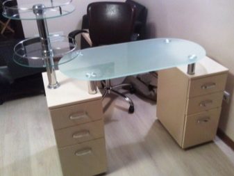 I tavoli in metallo e vetro o legno massiccio hanno un prezzo piuttosto elevato. Pertanto, solo un salone di alta classe può permetterseli.Per un manicure casalingo, non è necessario un tavolo del genere: puoi farlo con una versione standard economica di materiali moderni.