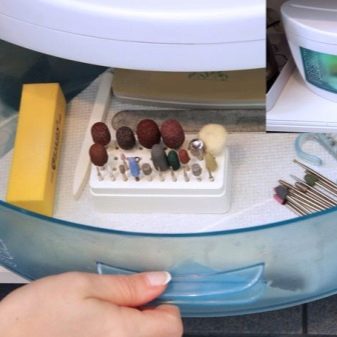 E anche i tavoli per manicure possono essere ulteriormente dotati di un aspirapolvere incorporato: è necessario per quei maestri che lavorano con polvere acrilica o altri materiali per costruire unghie. L'aspirapolvere pulisce qualitativamente la superficie e l'aria sopra il luogo di lavoro da polvere acrilica e altri materiali volatili.