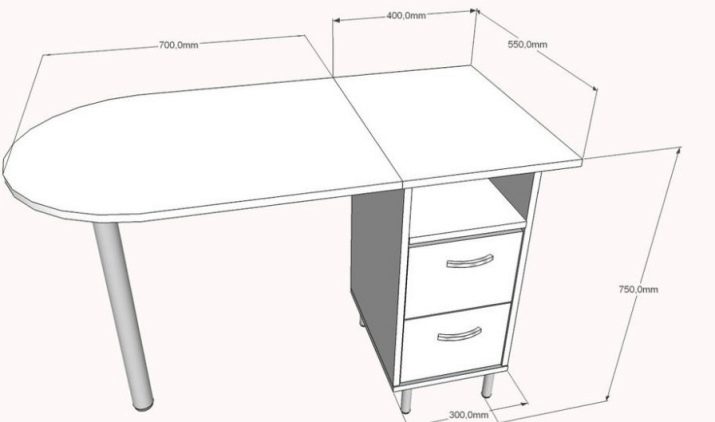Le tabelle manicure per uso domestico possono essere eseguite in modo indipendente. Per questo, non saranno necessari molti materiali, ma soprattutto sono necessari disegni dettagliati. Per cominciare, è necessario determinare la dimensione della tabella in base all'area dell'alloggiamento. Dimensioni ottimali: larghezza 45-50 cm, lunghezza 100-110 cm, altezza 70-75 cm.