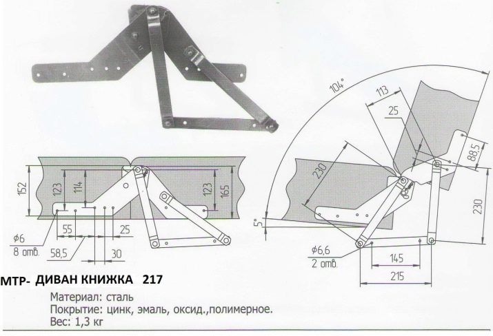 I dettagli del divano con meccanismo di trasformazione a "libro" sono 2 strutture portanti in metallo o legno con elementi fissi a molla o altri riempitivi morbidi. Un vano portaoggetti per biancheria da letto è spesso disposto di seguito.Per garantire che il dispositivo non si inceppi e che la struttura di supporto non si deformi, vengono utilizzati i rulli di centraggio. Inoltre, offrono l'opportunità di risparmiare tempo e fatica, perché consentono di allungare il sedile senza sollevarlo. Esistono diverse opzioni per il "libro": "Eurobook" e "click-gag". Il "click-gag" è pratico in quanto può essere praticato in 3 posizioni: sedentaria, semi-sedentaria e supina.