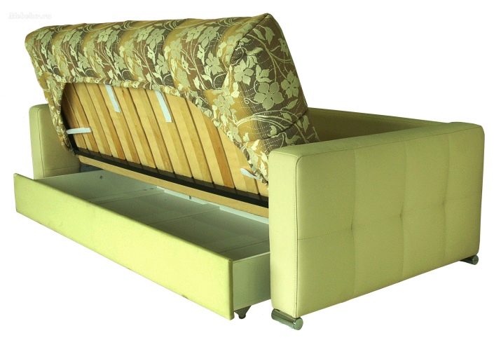 - i mobili hanno la capacità di aprirsi esclusivamente in 2 posizioni: seduto e disteso. Quando si trasforma nell'area in cui sono agganciati gli elementi pieghevoli, è molto probabile che appaia un rigonfiamento o un approfondimento, che influirà negativamente sul comfort del sonno;