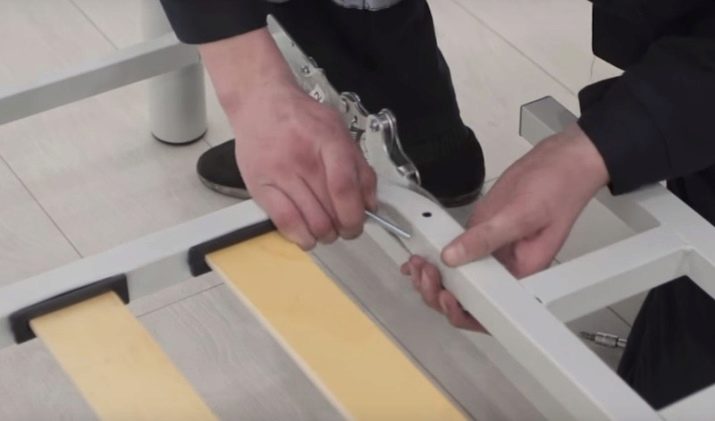- 8 ° passaggio. Ora, sul lato opposto della struttura portante, è necessario fissare il materasso mediante appositi tappi, fissandoli sul telaio.