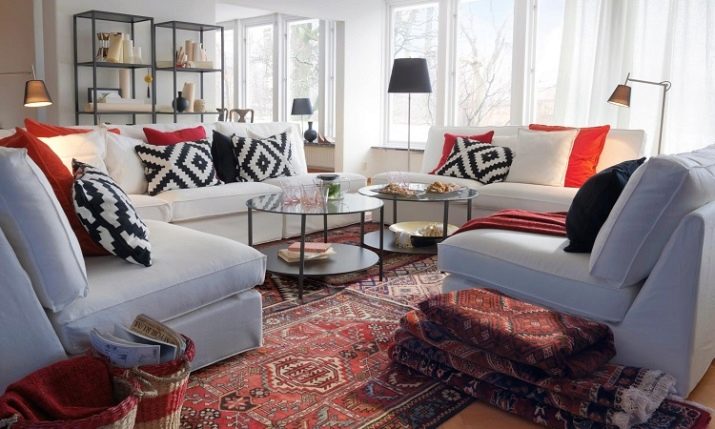 - Gli stessi divani modulari, realizzati nello stesso stile. La combinazione di colori combina stile scandinavo e note di qualcosa di orientale.