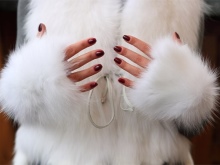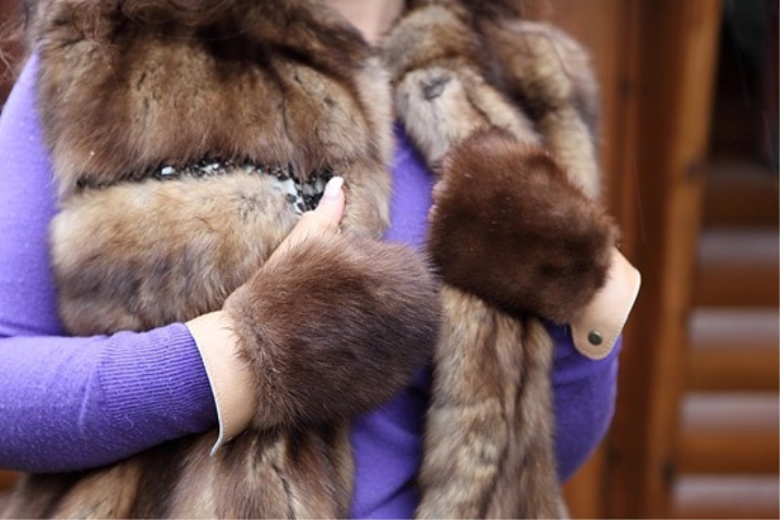 I guanti in pelliccia in combinazione con un gilet in pelliccia simile creano un'immagine armoniosa per un inverno nevoso.