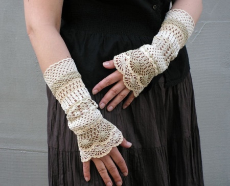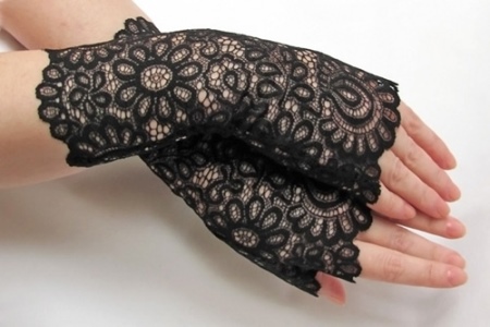 Guanti in guipure o pizzo sono un accessorio preferito per gli amanti dello stile di abbigliamento vintage.Di solito, i modelli neri sono scelti per creare un'immagine del genere, che sembrano interessanti e contrastano sulle mani.