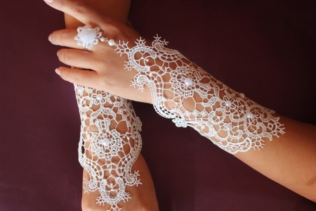 Per creare un look da sposa, le spose di solito scelgono motivi in pizzo e guipure. La struttura intricata e senza peso di tali guanti sottolinea la femminilità e la raffinatezza di una giovane natura, contribuendo a creare un'immagine originale, romantica e allo stesso tempo solenne.