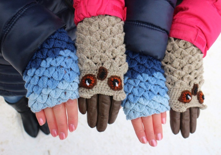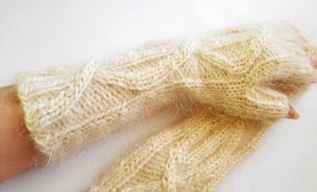 I modelli più caldi tra i guanti a maglia senza dita possono essere chiamati down. Il filato naturale che utilizza lanugine per animali è ipoallergenico e ha la capacità di trattenere il calore con un'eccellente circolazione dell'aria. Tali prodotti completeranno perfettamente qualsiasi look invernale e in un ensemble con altri accessori lavorati a maglia diventeranno il vero fiore all'occhiello di qualsiasi outfit.