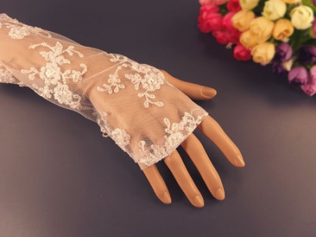 I guanti più delicati e senza peso per il giorno più importante nella vita di ogni ragazza. I modelli traforati sono elegantemente attaccati con un dito e aggiungono solennità e femminilità all'immagine.