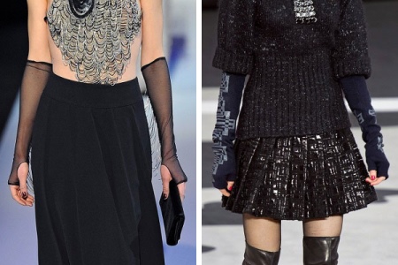 È un errore credere che questi modelli possano essere indossati solo con abiti senza maniche o con maniche corte. Molte fashioniste nascondono abilmente i bordi dei guanti sotto le maniche di giacche, cappotti e piumini, creando immagini originali e uniche.