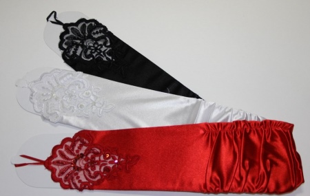 La scelta della lunghezza rimane una questione individuale, ma molto spesso usano modelli che arrivano quasi al gomito. Scegliendo questo accessorio, dovresti considerare lo stile del vestito. È preferibile scegliere un abito con maniche corte e modelli di corsetto senza maniche.