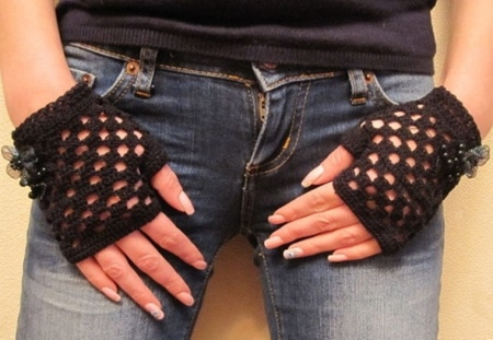 I più versatili sono i guanti neri senza dita. Oltre a creare immagini vintage o gotiche, i guanti neri si adattano perfettamente allo stile casual e si abbinano perfettamente ai jeans. I modelli traforati di colore classico saranno il complemento perfetto per l'immagine solenne.