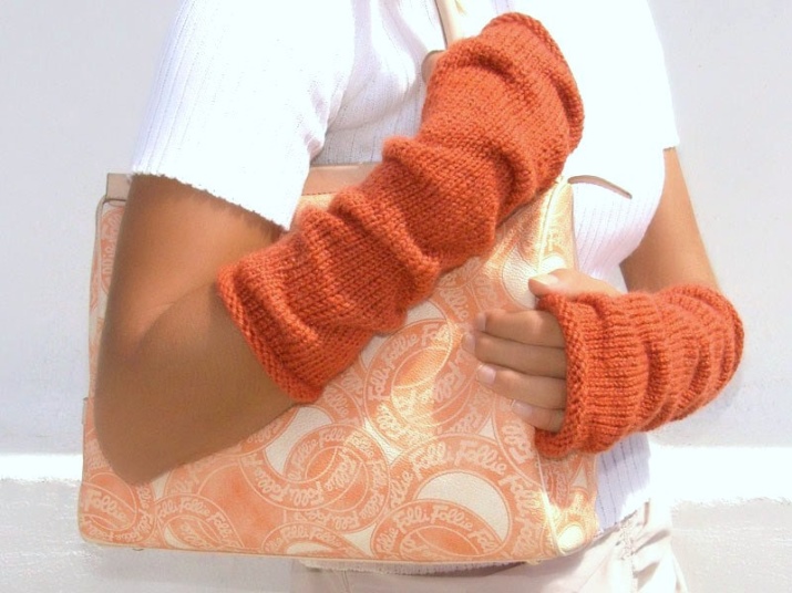 I guanti lunghi senza dita possono essere leggermente più alti del gomito o coprire completamente il braccio come una manica. In genere, i modelli di questa lunghezza sono indossati durante la bassa stagione o in inverno. Pertanto, questi accessori sono in genere a maglia e si abbinano bene a gilet gonfio o in pelliccia, coprendosi completamente le mani. Un accessorio a maglia molto insolito di taglia lunga, leggermente arrotolato fino al gomito.
