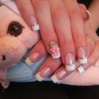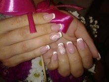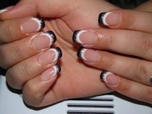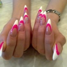 Un'opzione di design elegante per unghie artificiali sarà il design francese. Può essere eseguito sulla base del disegno acquatico di una tecnica tradizionale o inversa. In ogni caso, puoi ottenere un risultato straordinario modificando la larghezza e la forma del sorriso. Può essere un arcuato classico, sotto forma di onda, zigzag, cuore, lampo, due triangoli.