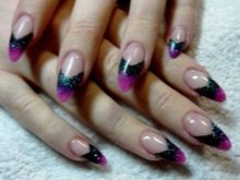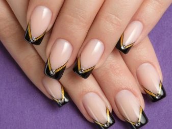 Per quanto riguarda la giacca inversa, puoi crearla in vari modi. Come la versione tradizionale, può tendere all'asimmetria e alle linee diagonali. Puoi crearlo sullo sfondo principale con speciali colori acrilici, smalto gel e persino acquerello artistico. Oltre a una giacca di servizio invertita, puoi creare un normale motivo a punti realizzato utilizzando i punti. È possibile creare un design francese accentuando la cuticola con archi realizzati con strass.