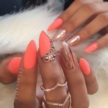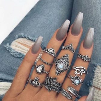 Per quanto riguarda la forma migliore, ogni donna avrà la sua. E il punto qui non è tanto di moda quanto nelle caratteristiche delle loro unghie e dei loro buchi. Questa sfumatura è attirata dall'attenzione del maestro, scegliendo nella fase iniziale di costruzione della forma corretta per le dita, la mano e anche la posizione delle pareti laterali del piatto.