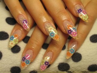 A seconda della larghezza delle unghie e della loro lunghezza, è possibile utilizzare vari elementi decorativi per progettare unghie estese.