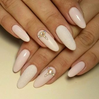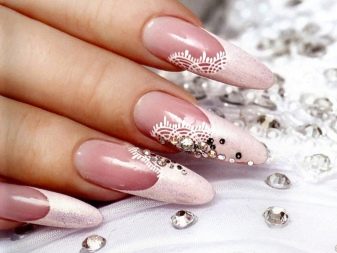 Tuttavia, affinché una manicure da sposa abbia un bell'aspetto con i gioielli, non dovrebbe essere sovraccaricata da un'abbondanza di disegni e accenti.
