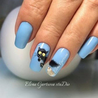 - Il disegno compositivo su due unghie adiacenti nella forma di un gatto non lascerà indifferente nessun fashionista.