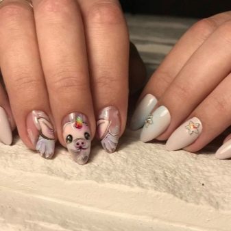 L'arco di un abitante della città può trasmettere le sue preferenze non solo nei vestiti. Oggi è di moda il cosiddetto tema kawaii con il suo marshmallow intrinseco. Lo stile di una ragazza anime o Lolita si esprime nella scelta di sfumature pastello di vernice, disegni delicati e graziosi su unghie accentate di manicure. Può essere caramelle al caramello o marshmallow vorticoso, cuori, foche, orsi di panda, stampe di peluche, pois e strisce lucenti.