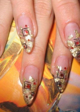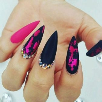Questo arredamento è piuttosto controverso: qualcuno lo considera una reliquia, a qualcuno piace, altri lo considerano superfluo, impedendo alla trama di mostrarsi in tutta la sua gloria. La moda considera strass e pietre come decorazioni appropriate per unghie estese.Tuttavia, richiama l'attenzione sul fatto che per un effetto elegante, questi elementi decorativi richiedono un dosaggio rigoroso, un posizionamento preciso e una considerazione dettagliata della composizione del design. Non possono attaccarsi a tutte le dita o anche a un intero piatto. È brutto, maleducato e pomposo.