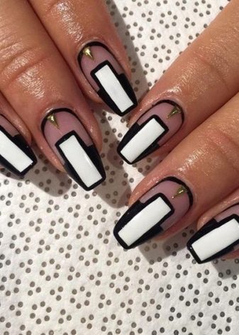 Se devi progettare le unghie tenendo conto delle rigide regole del codice di abbigliamento, devi fare affidamento su modestia e moderazione. Questi sono principalmente toni corporali o nudi, una giacca con un sorriso bianco o pastello, stampe geometriche con enfasi sulla concisione.