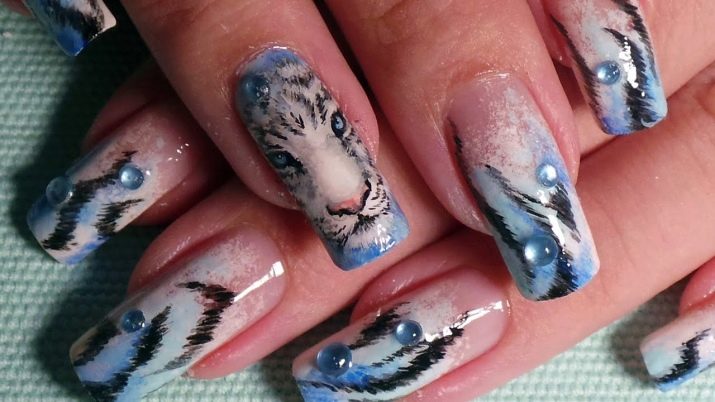 - Gradiente francese invernale nella pittura ad acquerello di ogni unghia, l'uso del disegno animalesco su una lamina ungueale.