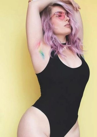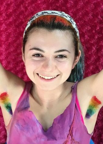 Poi c'è stato il desiderio di diversificare in qualche modo ciò che stava accadendo e i capelli cresciuti sotto le ascelle hanno iniziato a tingersi di diversi colori, tra cui l'arcobaleno.Questa tendenza si chiama "ascelle unicorno" - ascelle unicorno.