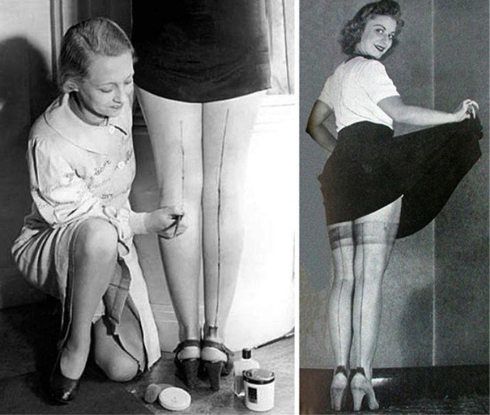 Le gambe rasate delle signore sono iniziate tardie, già negli anni quaranta del secolo scorso. Ci fu una guerra e l'industria non fece scommesse speciali sulla produzione di collant e calze, ma ce n'era bisogno. Una donna aveva bisogno di gambe lisce per applicare una rete di iodio che imitasse la presenza di calze.