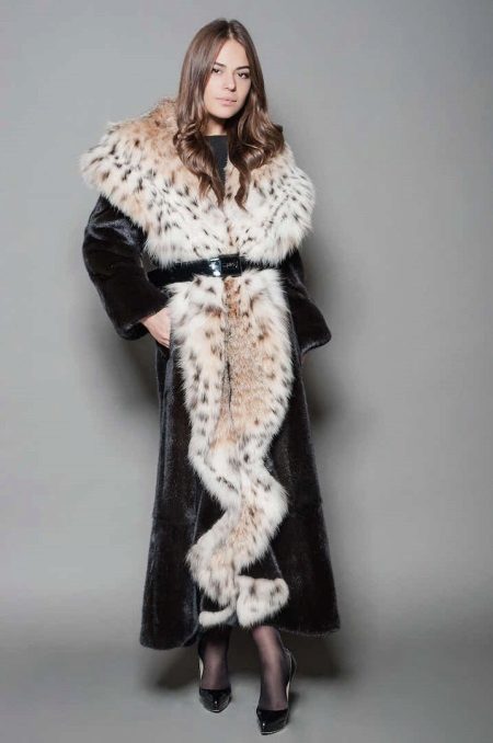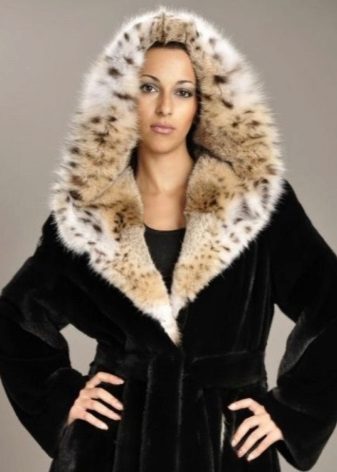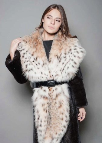 La lince situata sul colletto di un prodotto ha un aspetto magnifico. Opzione estremamente interessante con un ampio colletto rovesciato che ricorda uno scialle. La tendenza della stagione era un cappotto di visone con collo alto in lince stile chanel. In questa versione, è necessaria una sottile sciarpa di seta per non rovinare o strofinare la pelliccia mentre si indossa.