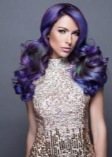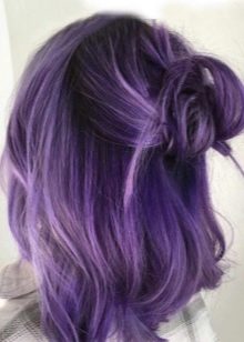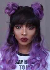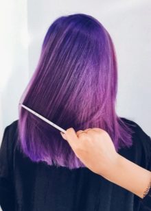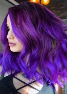 - Tonalità viola e lilla su capelli di qualsiasi lunghezza. Puoi tranquillamente provare un tono viola saturo o diluire la luminosità dei colori con un viola chiaro. In ogni caso, una tonalità brillante sarà una grande aggiunta a un look alla moda e moderno. Particolarmente spettacolare è la tintura viola sui capelli naturalmente scuri.