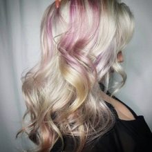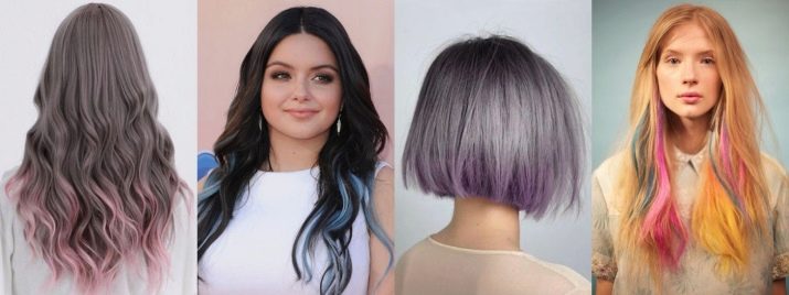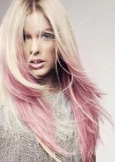 - Tinsel o tinsel colorazione, brillante e radiosa. L'opzione più alla moda: sfumature di biondo beige o argento dello sfondo con punte colorate. La parte a contrasto può essere rosa, corallo, blu o lilla, a seconda della scelta del tono di base.
