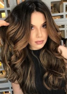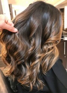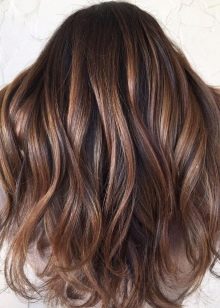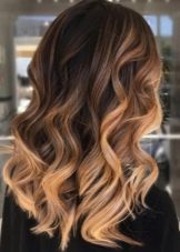 - Colorazione di marmo. Questa è una vera tecnica per le ragazze dai capelli scuri. Sembra elegante e moderno, le transizioni di colore sono naturali e uniche a causa della colorazione aperta. Una sequenza speciale di colorazione dei fili consente di aumentare visivamente il volume dell'acconciatura, creando effetti 3D.