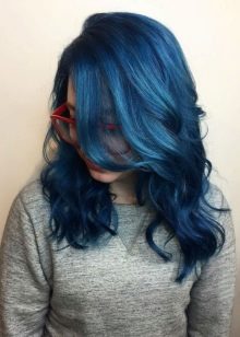 - Blu saturo. La tendenza di quest'anno, è diventato, sostituendo il viola in questo post. La colorazione temporanea delle punte è particolarmente popolare, conferendo all'immagine un aspetto audace e giovane.